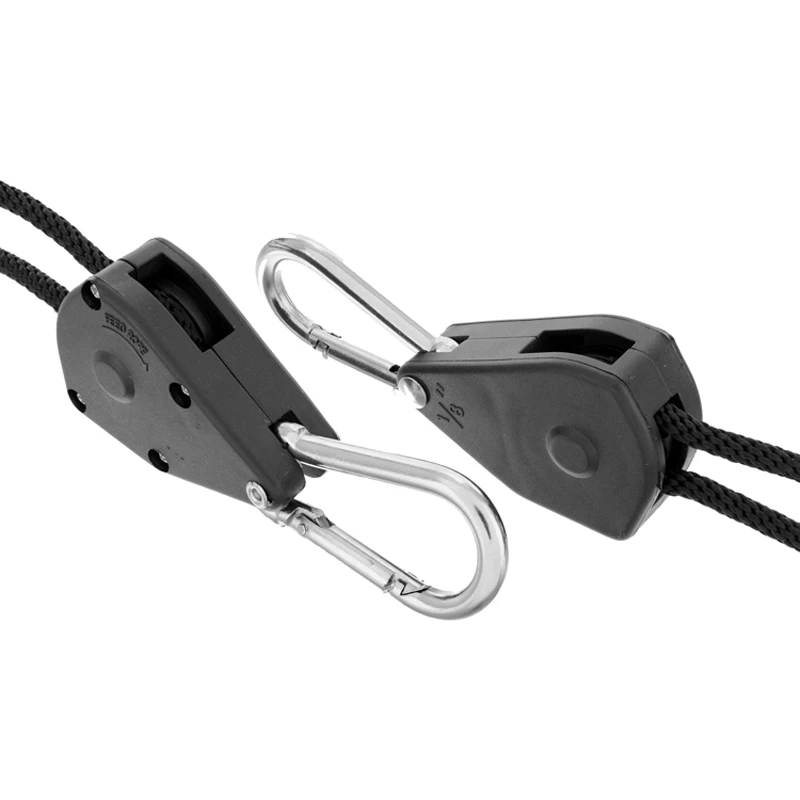 Mit den Ortoled Pulleys können Sie Ihre Grow-Lampen fast überall aufhängen! Die Karabinerhaken haben einen federbelasteten Verschluss, der Ihre Lampen sicher hält, ohne dass sie verrutschen können. Und ein verschiebbares Clipsystem ermöglicht es Ihnen, die Höhe Ihrer Lampen an die Höhe Ihrer Pflanzen anzupassen.
