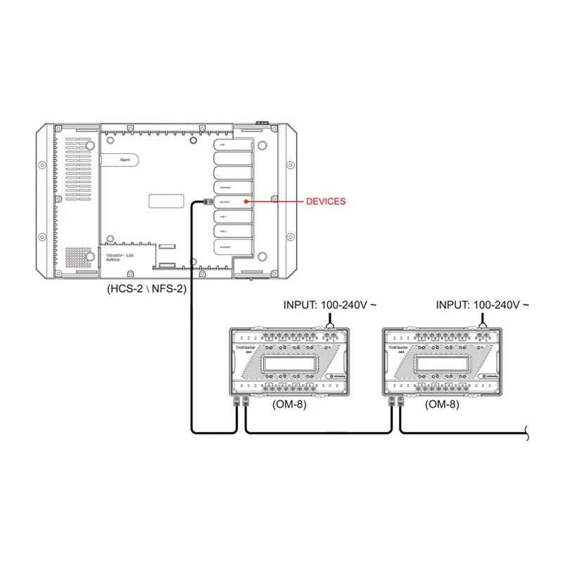 *Die OM-8 muss in einem Schaltschrank montiert und an eine Spannungsversorgung zwischen 100 und 240 VAC angeschlossen werden.