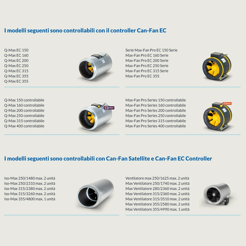 More flexibility and control is desirable. Can-Fan's latest generation EC fans and EC controllers do not have the restrictions that AC fans have. EC fans are not limited by amperage.The number of fans you can control is theoretically unlimited. This is a huge step forward, provided you use EC fans like Q-Max EC and Max-Fan Pro Series EC. But what happens if you use AC fans?