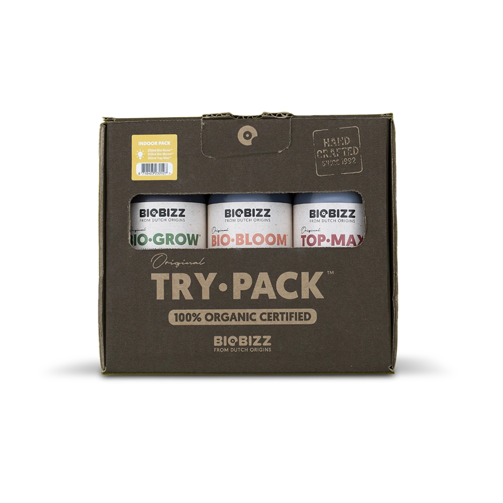 Si l'idée d'essayer la culture en intérieur vous tente mais que vous ne savez pas par où commencer, essayez le Biobizz Try-Pack Indoor. Il combine les 4 composants de la famille Try-Pack, de sorte qu'il est très facile de devenir un expert de la gamme d'engrais organiques Biobizz.