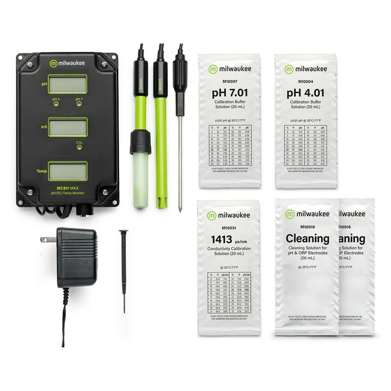 Le contrôleur Milwaukee MC811 MAX pH/EC/Temp est l'outil de choix pour les personnes qui veulent savoir 24 heures sur 24 et 7 jours sur 7 quels sont leurs niveaux de pH et de nutriments sur une base continue. Les utilisations courantes sont les réservoirs de nutriments, l'hydroponie et les aquariums.