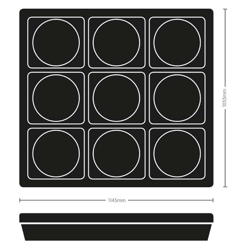 Auto9 XL combina nove vasi di plastica da 25L o nove da 20L FlexiPots in tessuto e una valvola AQUAvalve in un unico vassoio.