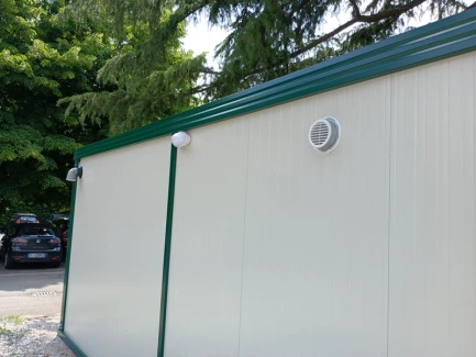 Prefabbricato per esterno da cm 1200x240x270h completo di basamento, pareti in pannelli sandwich, serramenti in alluminio/PVC bianchi, impianto elettrico e condizionamento.