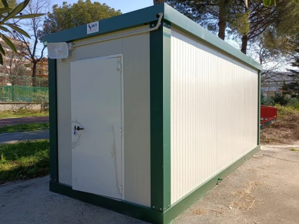 Prefabbricato per esterno da cm 600x240x270h completo di basamento, pareti in pannelli sandwich, serramenti in alluminio/PVC bianchi, impianto elettrico e condizionamento.