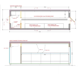 - Superficie netta di coltivazione talee in 2 stadi: 5.70m2 su 2 livelli
