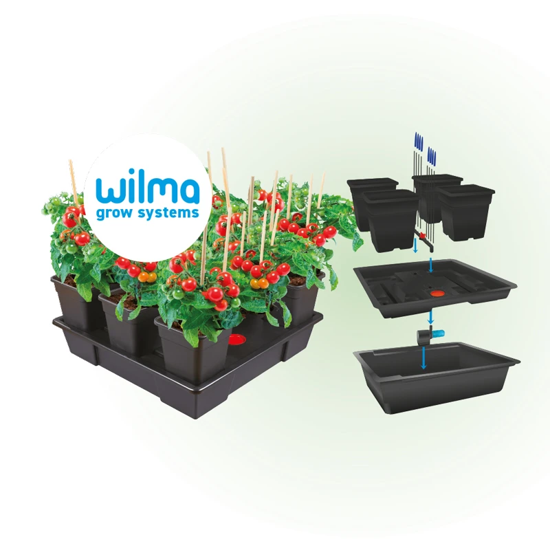 Bei diesem hydroponischen Kreislaufsystem müssen Sie nur den Nährstoff oder Dünger in den Nährstofftank einfüllen, den Rest erledigt Wilma. Die Wasserpumpe im Nährstofftank bewässert die Pflanzen, wenn der Timer zu den voreingestellten Zeiten läuft (ON).Nicht verbrauchte Nährstoffe kehren in den Nährstofftank zurück und werden wiederverwendet, was es zu einem der wirtschaftlichsten automatischen Bewässerungssysteme macht. Für saugfähige Medien wie Erde, Kokos oder Steinwolle verwenden Sie den bei Wilma-Systemen erhältlichen Fliesenfilter, um das Risiko einer Verstopfung zu verringern.