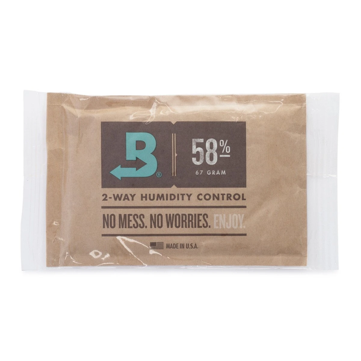 Die patentierten Boveda-Packungen im Inneren des Behälters halten die relative Luftfeuchtigkeit stabil und fügen bei Bedarf Feuchtigkeit hinzu oder nehmen sie auf, um den Inhalt konstant bei 58% (+/- 1%) zu halten.
