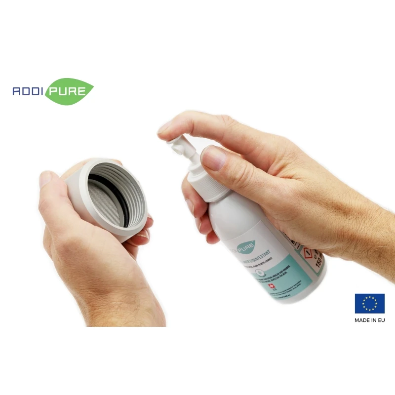 ADDIPURE 2in1 Cleaner Disinfectant is also suitable for hand disinfection. To do so, spray one jet (dose 3ml) and leave to work. Ready! ADDIPURE 2in1 Cleaner Disinfectant is self-drying and gentle on the skin.
