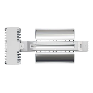 The ballast is ready for the new digital controller platform and is upgradable. The Pro series has a closed ballast instead of an open ballast. This protects the ballast from moisture. The Geo Membrane equalises the pressure inside and outside the ballast, while preventing condensation on the electronics.The vertically mounted ballast will reduce the amount of daylight blocked by the luminaire. We performed daylight simulations in CAD and this design had the least amount of light interception during a complete daylight cycle.