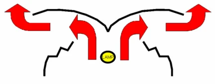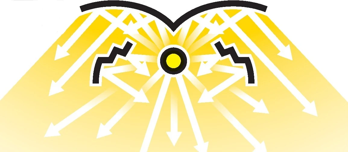 The unique profile of the reflector is designed to dissipate the heat emitted by the lamp and increase illuminance at the sides of the lamp, thus ensuring uniform illumination and heat reduction.