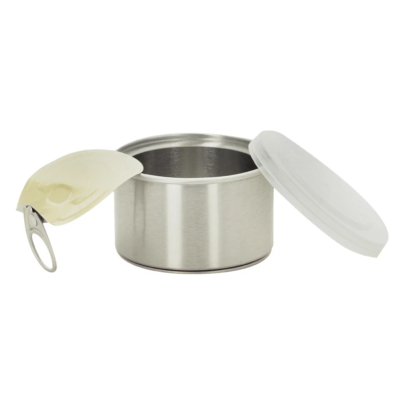 Qnubu self-sealing can with lid and press-on cap.