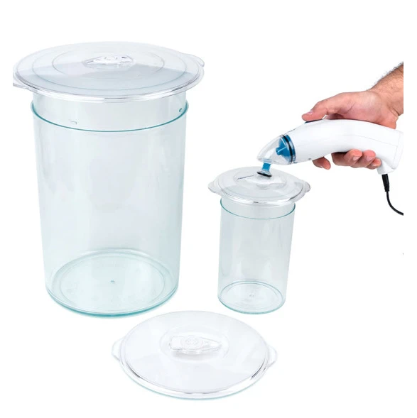 The thickness of the inner gasket allows use for containers with diameters ranging from 10 cm to 18.5 cm using the Vacumax vacuum pump (cod: 920066).