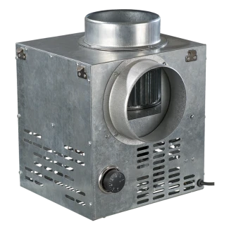 La struttura del ventilatore per caminetto KAM è realizzata in acciaio zincato resistente alla corrosione. Per garantire la massima efficienza e silenziosità, l'unità è dotata di isolamento termico e acustico interno in lana minerale ignifuga. Il sistema integra un motore termoresistente progettato per operare con temperature dell'aria elevate e una girante centrifuga che assicura una pressione elevata per spingere il calore attraverso condotti di lunga gittata.