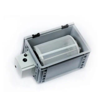 La vitesse du tambour est réglable d'environ 8 à 35 tr/min (en 7 étapes) et le sens de rotation peut être modifié en changeant la polarité de la fiche. La taille standard des mailles est de 150μm.