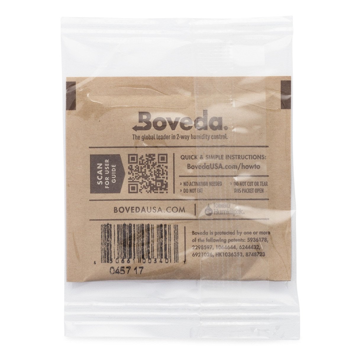 All'interno di ogni Boveda è presente una membrana a "osmosi inversa" permeabile al vapore acqueo. Dentro quella membrana c'è una soluzione satura appositamente preparata di acqua pura e sale naturale. Se necessario, Boveda rilascia o assorbe il vapore acqueo purificato attraverso la membrana per mantenere un livello predeterminato di (RH).