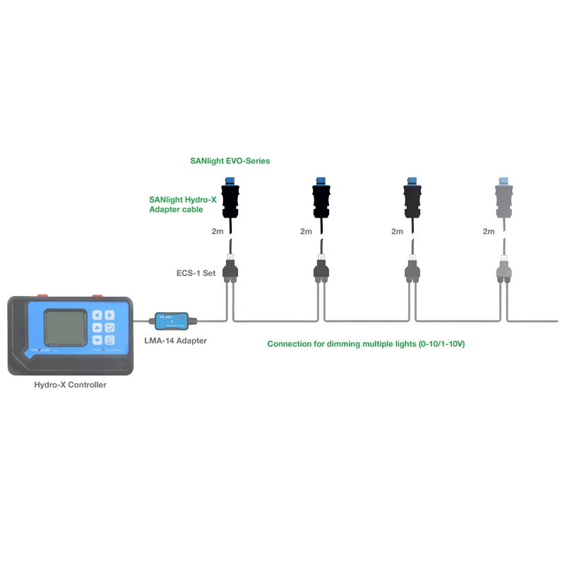 Il cavo adattatore collega l'apparecchio SANlight EVO al controller Trolmaster per la regolazione. Il cavo adattatore fornisce il passaggio dal connettore Wieland impermeabile della serie EVO alle connessioni Trolmaster RJ12 non protette. Pertanto, la serie EVO può essere utilizzata senza problemi con un controller Trolmaster.