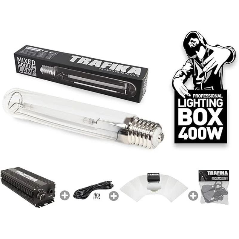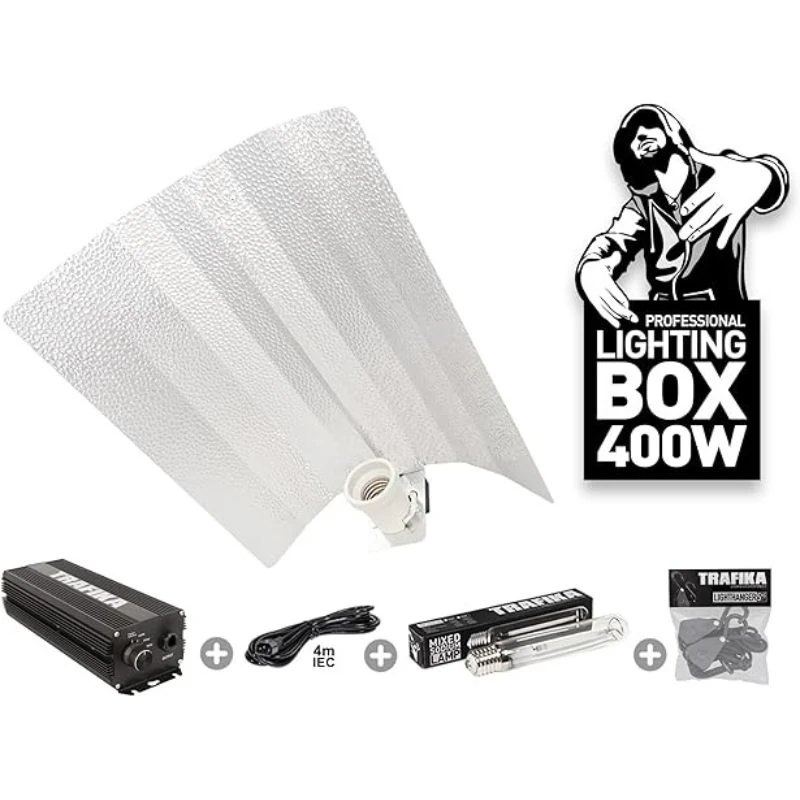 Komplettes Beleuchtungsset für den Innenanbau. Dieses System versorgt den Anbau mit der richtigen Menge an Licht, die für ein gesundes, kräftiges und hochwertiges Wachstum und Blüte benötigt...