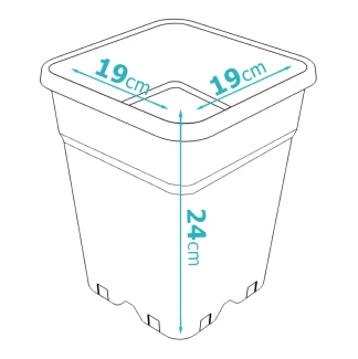Viereckiger 6.5L Plastik-TopfAbmessungen: 19x19x24h cmAuch in praktischen vorverpackten Kisten und auf ganzen Paletten erhältlich.