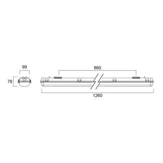 Polycarbonate housing Double version, 2x1200 mm Type of protection IP65 Luminous...