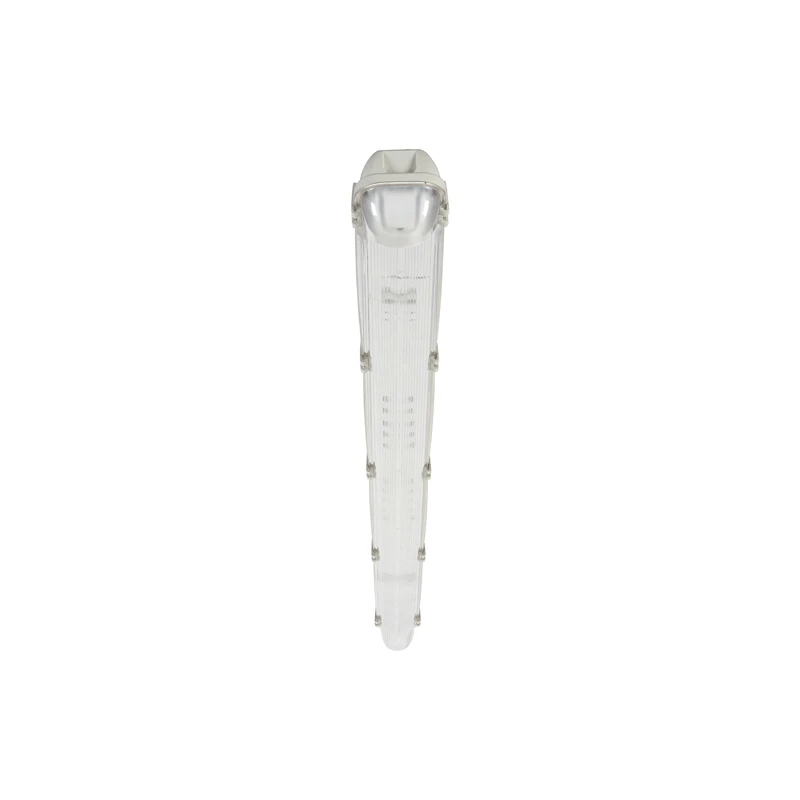 Polycarbonate ceiling light Single version, 1200mm Type of protection IP65 The luminous flux and light colour vary depending on the LED tubes used Easy to install with stainless steel fixing brackets included for ceiling mounting Ideal for any industrial facility, garages, car parks, workshops.