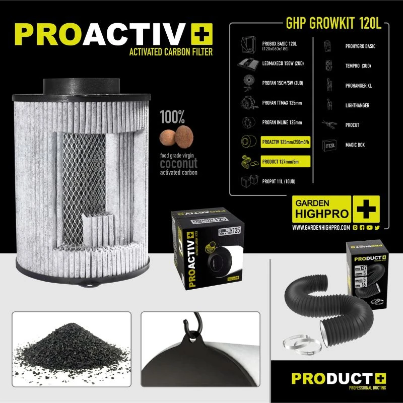 - Filtre : filtre à charbon actif Proactiv 125 mm (100 % sans odeur).