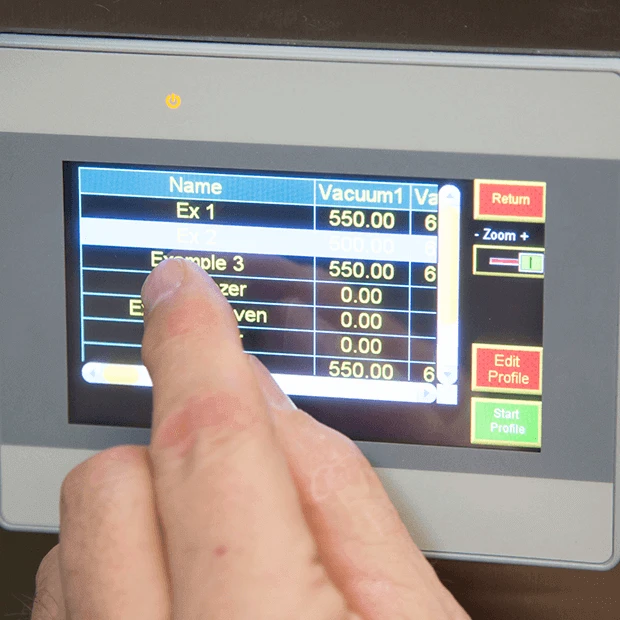 Contrôle de la température de l'étagère pendant le cycle de séchage. Il est possible de régler jusqu'à cinq températures de stockage différentes, ce qui permet au produit de sécher par étapes, à différentes températures. Par exemple, il est possible de commencer le séchage à 10°F et d'augmenter la température par étapes jusqu'à ce que la température finale de séchage soit de 70°F.