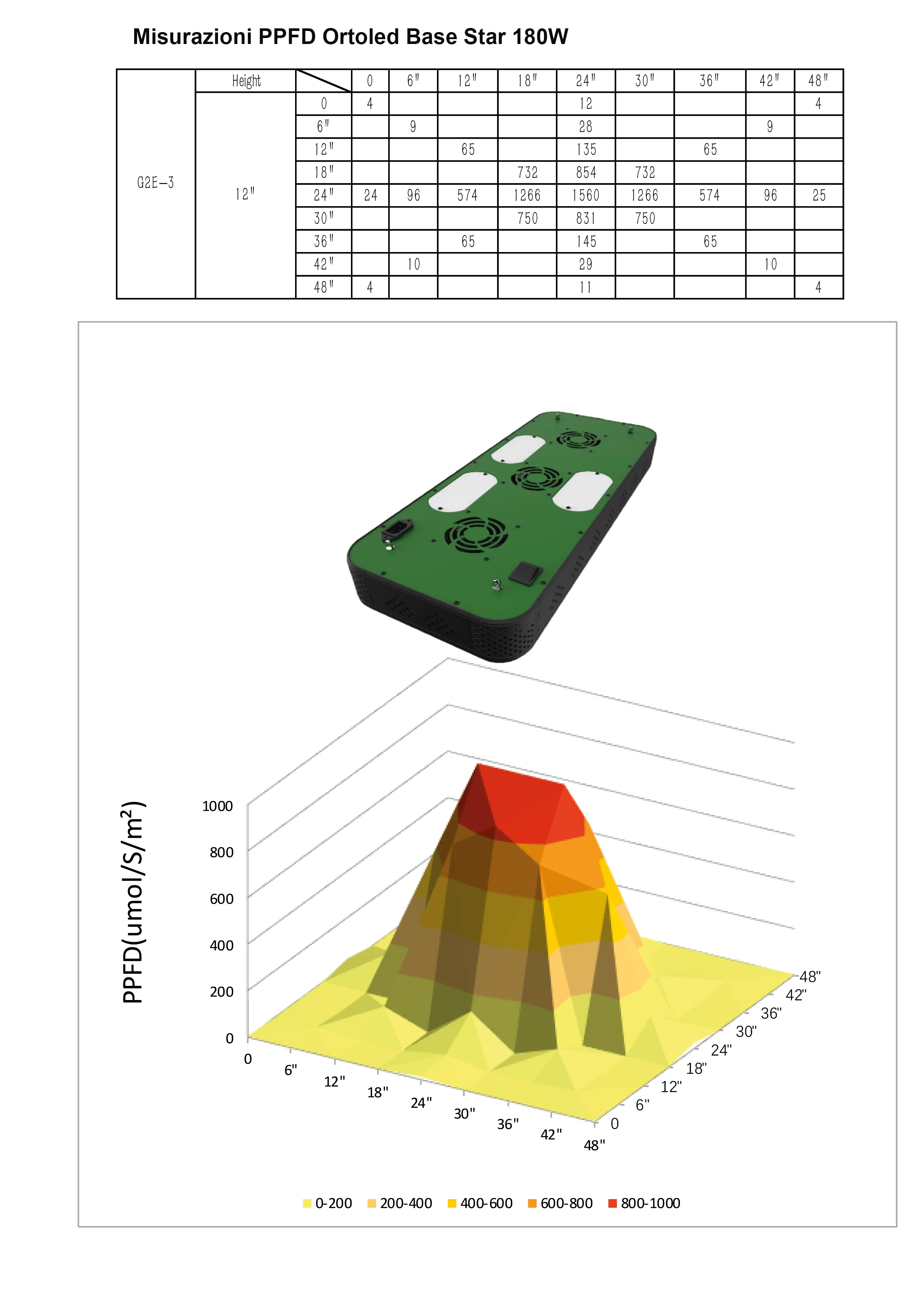 PPFD max à 30cm : 1488 umol/s/m2