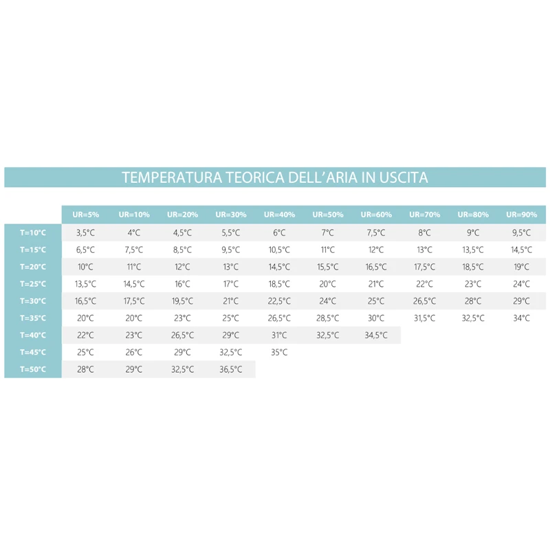 L’acqua evaporata assorbe il calore dall’aria, riducendone la temperatura. Di conseguenza, l’aria più fresca viene soffiata nell’ambiente circostante attraverso delle griglie o aperture, fornendo un piacevole effetto di rinfrescamento.