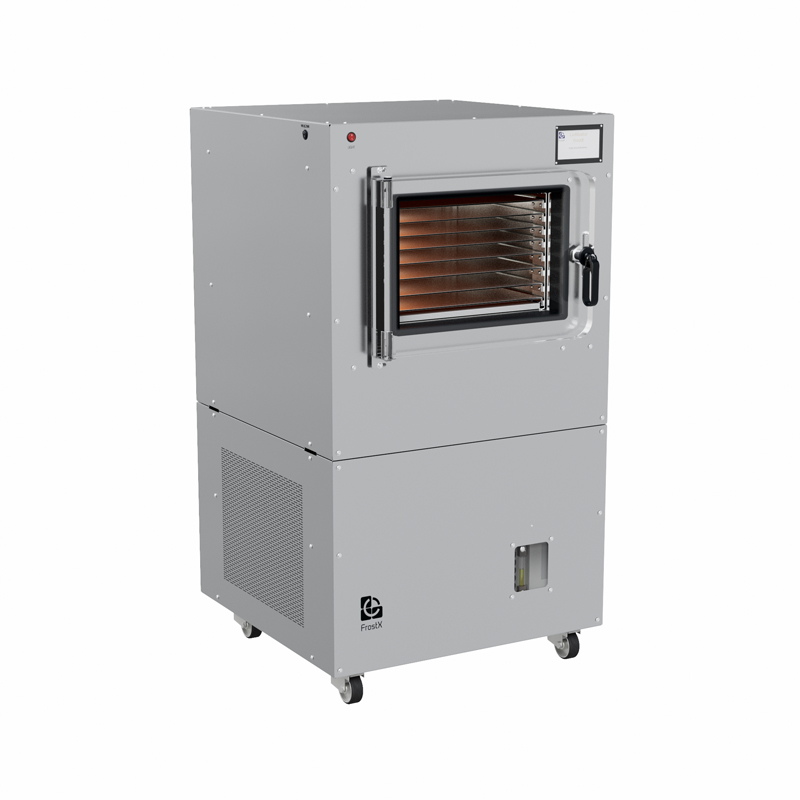 Le FrostX 15 est un lyophilisateur universel dont la capacité de charge maximale recommandée est de 15 kg. Il est largement utilisé par les fabricants de produits lyophilisés de haute qualité destinés à la fois à une utilisation en intérieur et à la vente au détail.