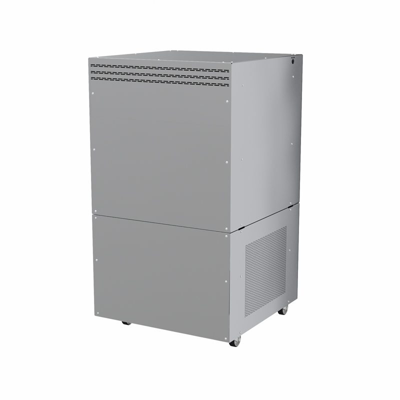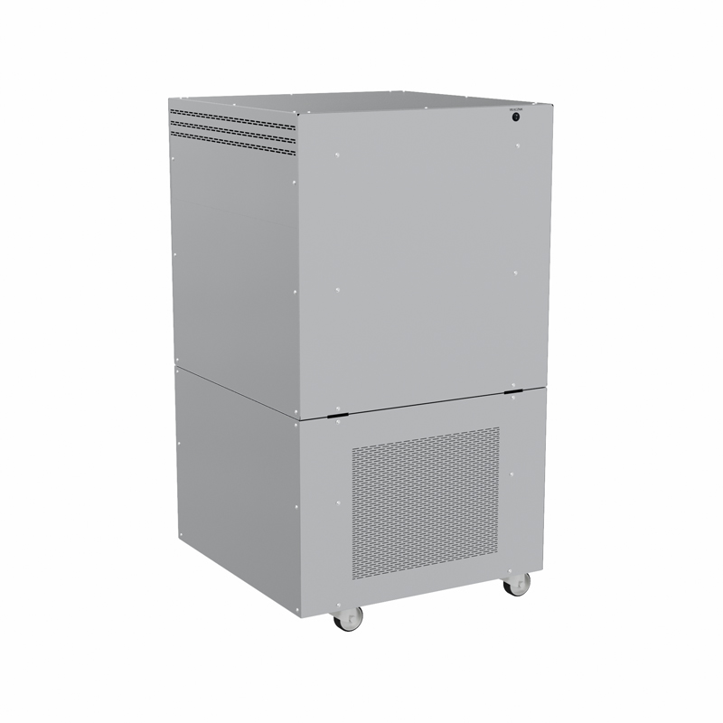 - Structure : boîtier solide de 130 x 73 × 72 cm sur roulettes, permettant un déplacement aisé de la machine. L'espacement constant de 3 cm entre les étagères garantit des conditions uniformes à tous les niveaux, ce qui assure le bon fonctionnement de la machine.