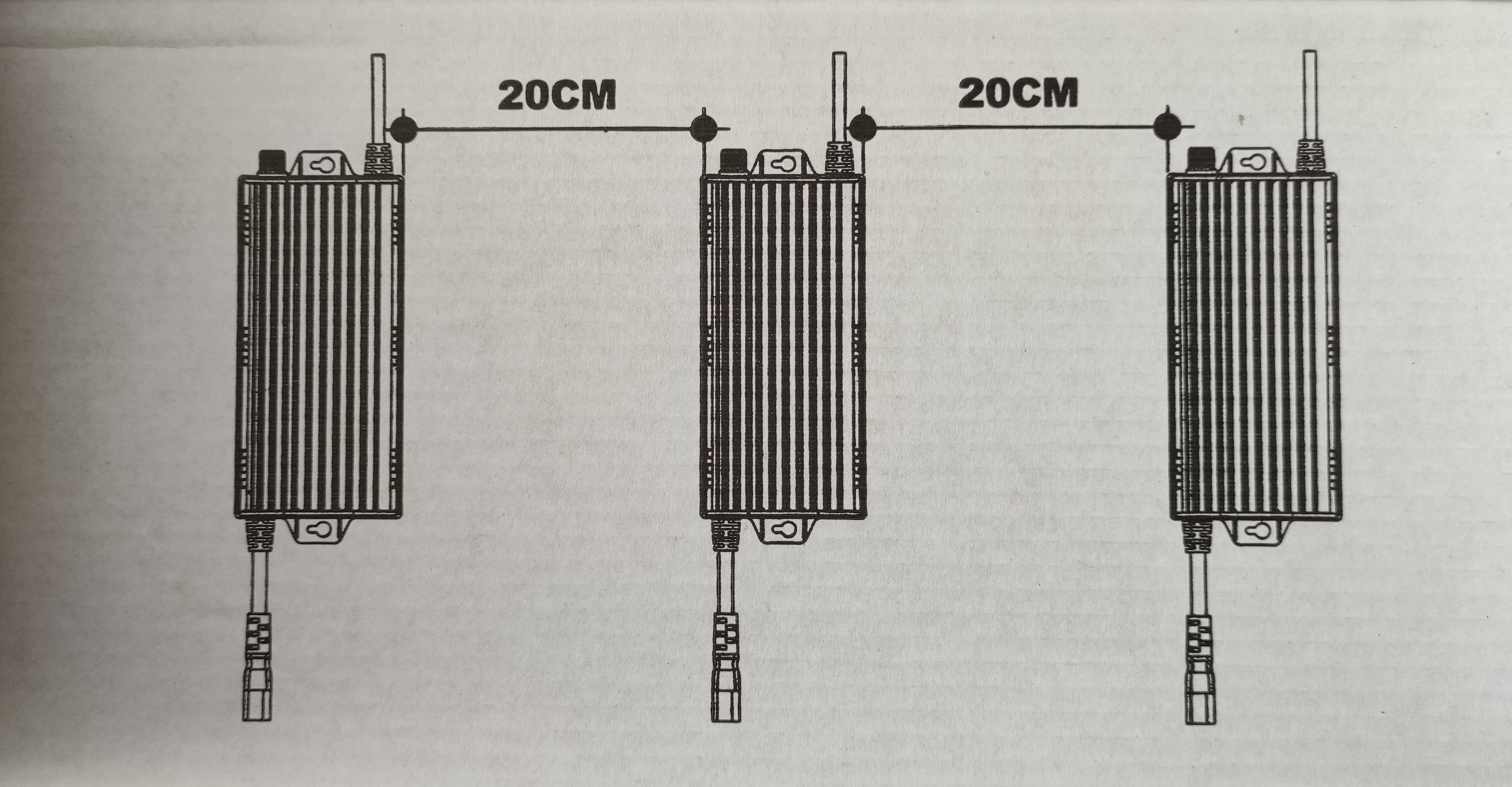 RESPECT THE MINIMUM DISTANCE OF 20 CM BETWEEN BALLASTS