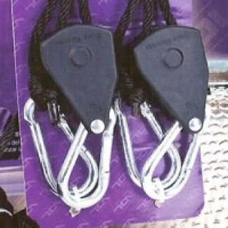 Par de poleas con mosquetones metálicos para sujetar accesorios en cuartos de cultivo. Carga máx. 68 kgLongitud máx. 160 cm