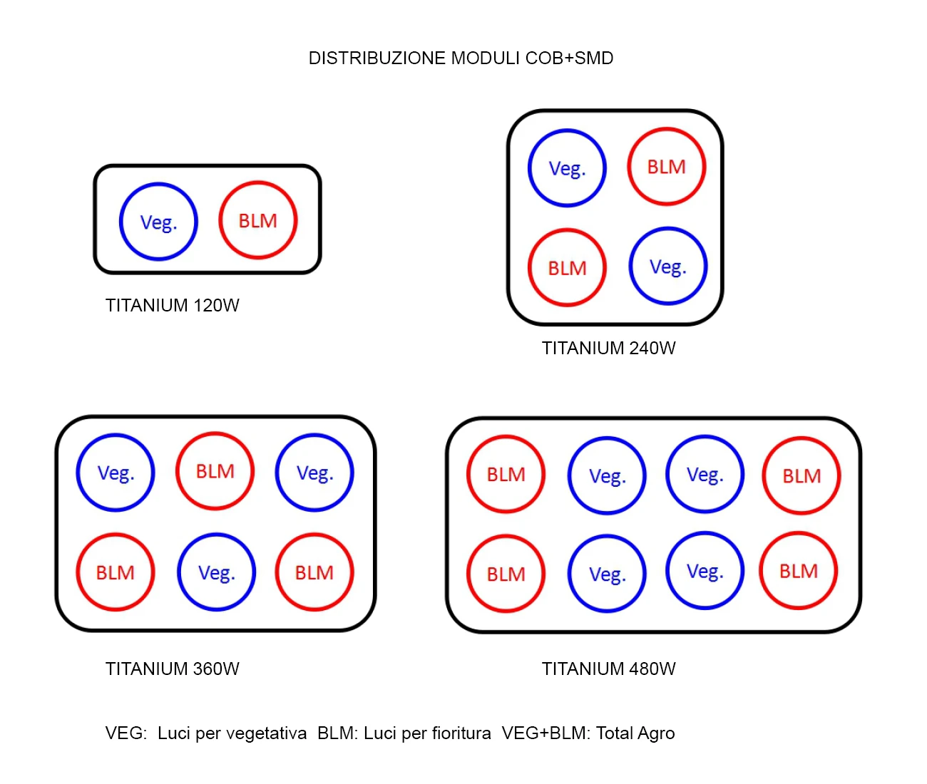 Il particolare spettro può essere settato per lavorare in fase vegetativa, fioritura o total agro , grazie agli interrutori montati sul retro.