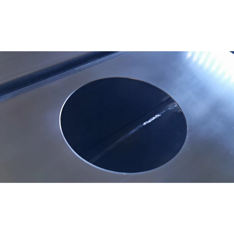 Der Boden der Zelle, der ebenfalls aus rostfreiem Stahl besteht, ist so konzipiert, dass das gesamte hydraulische System im Inneren untergebracht ist, so dass keine sperrigen und unansehnlichen Rohre im Anbaubereich vorhanden sind.