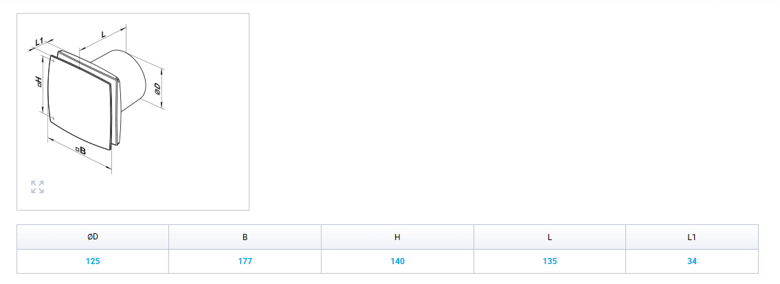LD125 ESTRATTORE ARIA - ASPIRATORE - VENTOLA DA PARETE SILENZIOSA Ø 125 mm, 167 m³/h -34 DBA