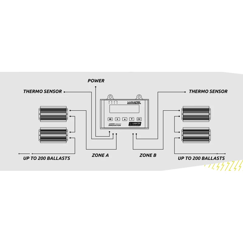 - Collegabile con reattori e dispositivi HID controllabili Lumatek; 315 W, 600 W, 630 W e 1000 W.