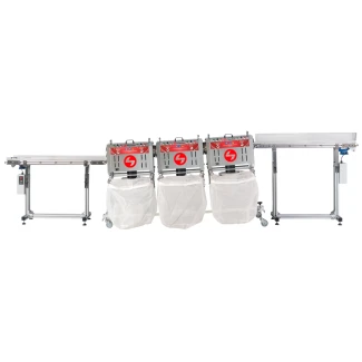 L'aggiunta del nastro trasportatore di uscita facilita un comodo sistema per il controllo della qualità , grazie al regolatore di velocità. I trasportatori consentono l'identificazione di fiori danneggiati e / o mancata rifilatura.