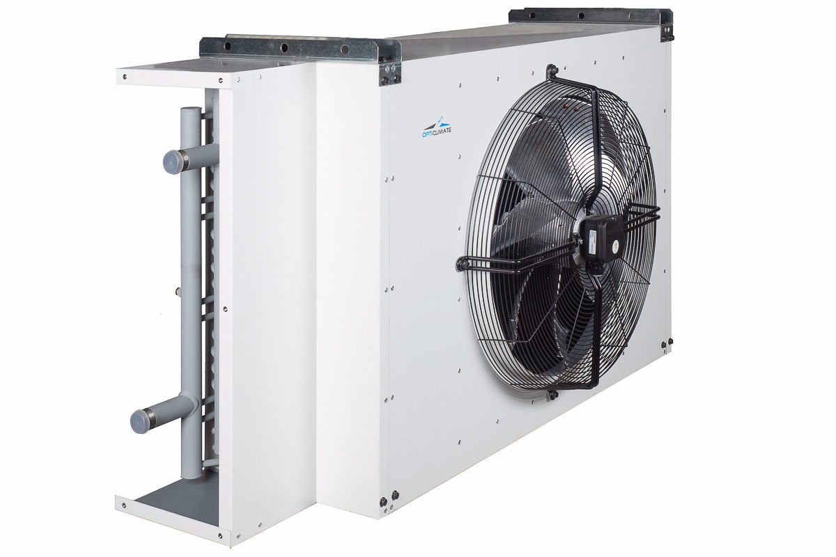 The chillercools the hot water produced by the OptiClimate Water Cooled system. Since the water chiller works with a closed system, there is no evaporation.The water chiller cools by transferring heat from a liquid to the cooler ambient air, so the water cooling unit must be placed outside. This system only needs to be filled once. The water or glycol remains inside the system.