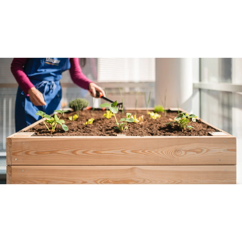 Elevego è una soluzione ecologica e duratura per l'orto urbano perché è costruito in robusto legno di larice non trattato. Resiste alle intemperie, è estremamente stabile e ha una profondità di 30 cm, che consente un ottimale sviluppo delle radici degli ortaggi.