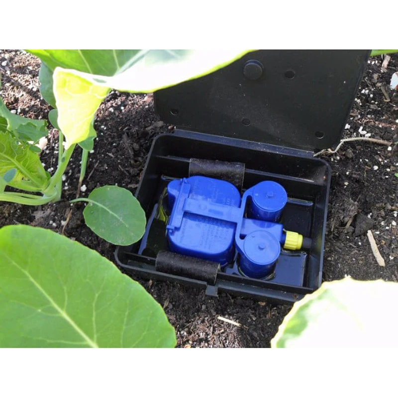 AquaBoxes require no electricity, pumps, timers or mains connection and are ideal for use in vegetable gardens or home gardening. A connection to a reservoir is all that is needed. Water from the tank will be supplied to the Aquabox by simple gravity.