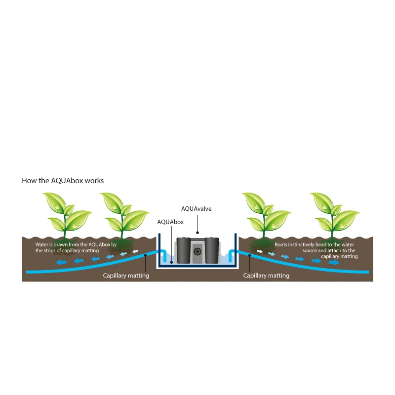 • Ensure that each strip of capillary matting is tilted away from the AQUAbox with a slight downward slope.