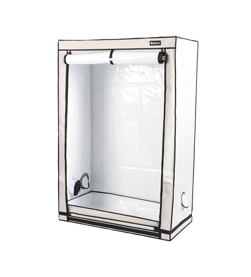 Dieses äußerst vielseitige Growzelt kann für die Aufzucht von Stecklingen oder frisch bewurzelten Setzlingen in Jungpflanzen, die Pflege einer einzelnen Mutterpflanze unter optimalen Bedingungen oder sogar für die Blüte und Fruchtbildung von bis zu zehn kleinen Pflanzen bis zur vollen Reife verwendet werden.