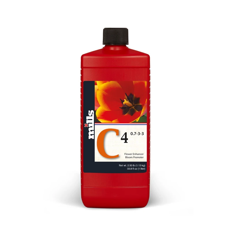 C4 von Mills Nutrients ist ein fortschrittlicher Blühstimulator, der die Versorgung der Pflanzen mit Kohlenhydraten, Makro- und Mikronährstoffen und Spurenelementen für die Blütenentwicklung unterstützt und die Entstehung und Reifung komplexer ätherischer Öle für die frühen und mittleren Stadien der Blütenentwicklung fördert.