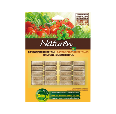 Die Naturen-Nährstäbchen liefern auch Schwefel, der die Vitaminbildung in den Früchten fördert und die Bodeneigenschaften (pH-Wert) verbessert.