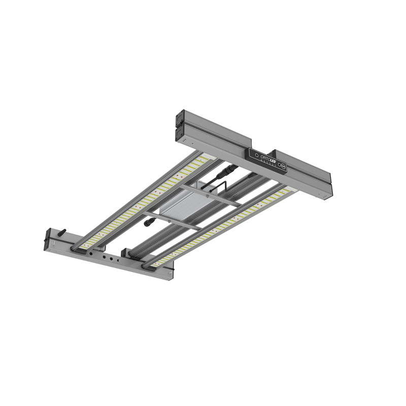 Die Lampe ORTOLED S LINE Foldable 760W PRO ist eine leichte und handliche Leuchte, die hohe PPF-Werte (2300 umol/s) und eine photonische Wirksamkeit von 3,05 umol/J erzeugtund für eine Fläche von 2,6-3,5 Quadratmetern empfohlen wird.