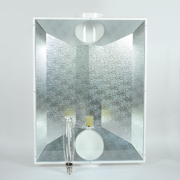 Die Funktionsweise ist ähnlich wie bei der Cooltube, aber die Leistung ist wesentlich höher. Das Pyrexglas, das von 2 Scharnieren getragen wird, schützt die Lampe, indem es die Luft entweichen lässt. Sie eignet sich hervorragend für sehr heiße und nicht zu hohe Anbauräume. Geeignet für den Betrieb mit Lampen von 600 bis 1000 W.