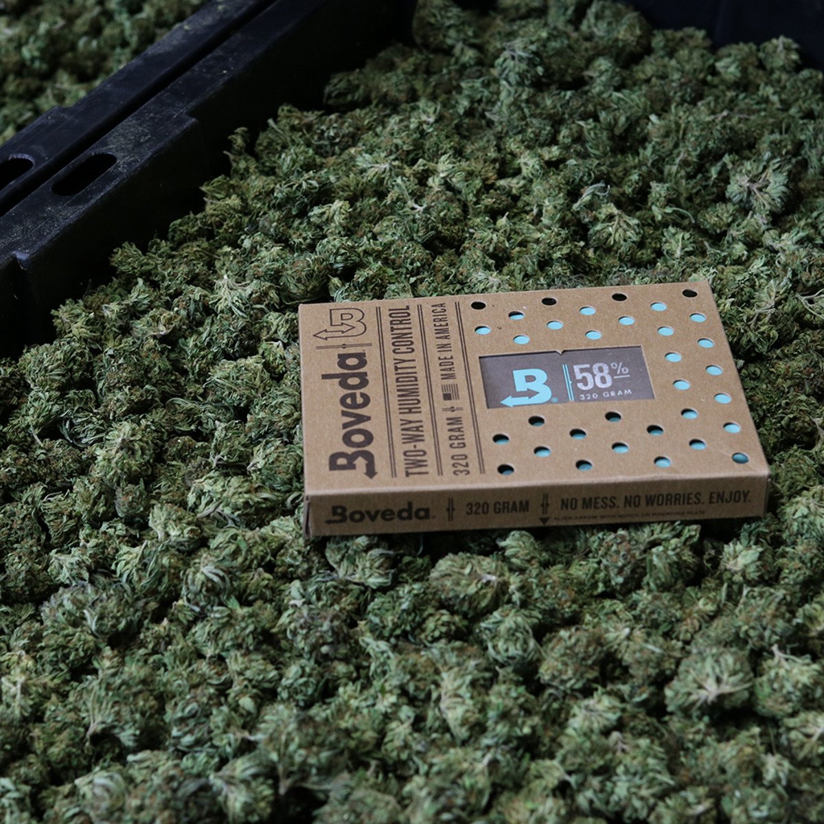 The patented Boveda packs inside the container keep the relative humidity stable and if necessary add or absorb moisture to keep the contents constant at 58% (+/- 1%).