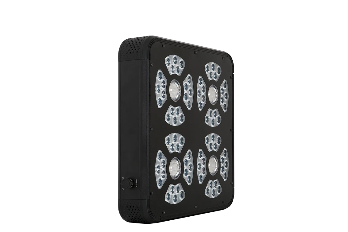 The combination of 4 high-penetration 63Watt COB EPI® LEDs and 80 3Watt LEDs allows maximum light absorption by the plants and incredible penetration even in areas shielded by branches and foliage.