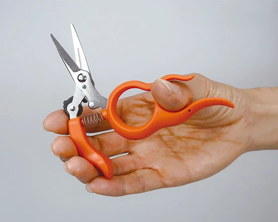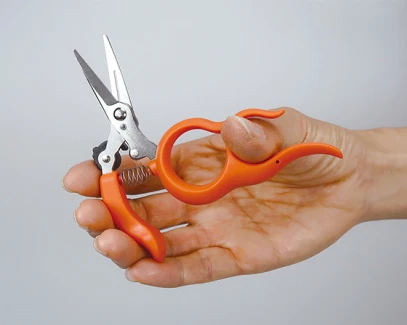 Ergonomic design and innovative design combine in these compact, hands-free scissors that allow you to keep them at your fingertips (literally) and ready to cut while multitasking. Insert your fingers and place or prepare your thumb on the unit while pruning, pinching, cutting and tying twine and more. The compact design is ideal for quick, targeted and precise cutting. For those who like smaller scissors, such as the 420 Sharps, these might be ideal.