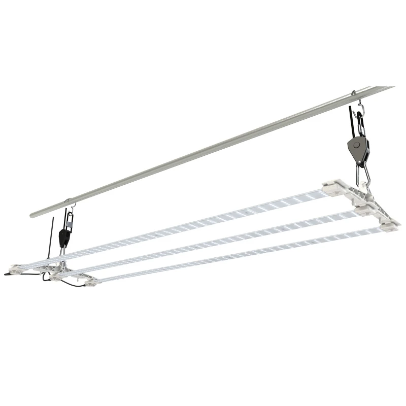 to grow areas of 40x120cm or 60x120cm by changing the position of the LED strips on the hook. The included power supply and suspension clips allow you to upgrade the kit to 120W by adding a third Cosmorow COP4065.